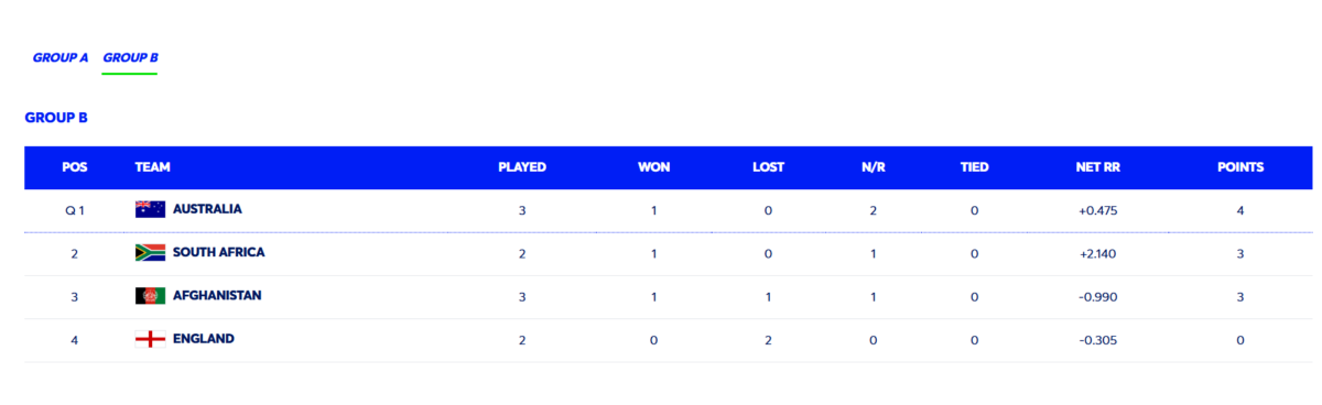 Afghanistan can only qualify for the semi-finals if England beat South Africa by a big margin. For example, if South Africa are chasing a target of 301, the Proteas have to lose by 207 runs, which seems like an impossible scenario. It’s safe to say that Afghanistan’s hopes of making the last four has very well diminished.