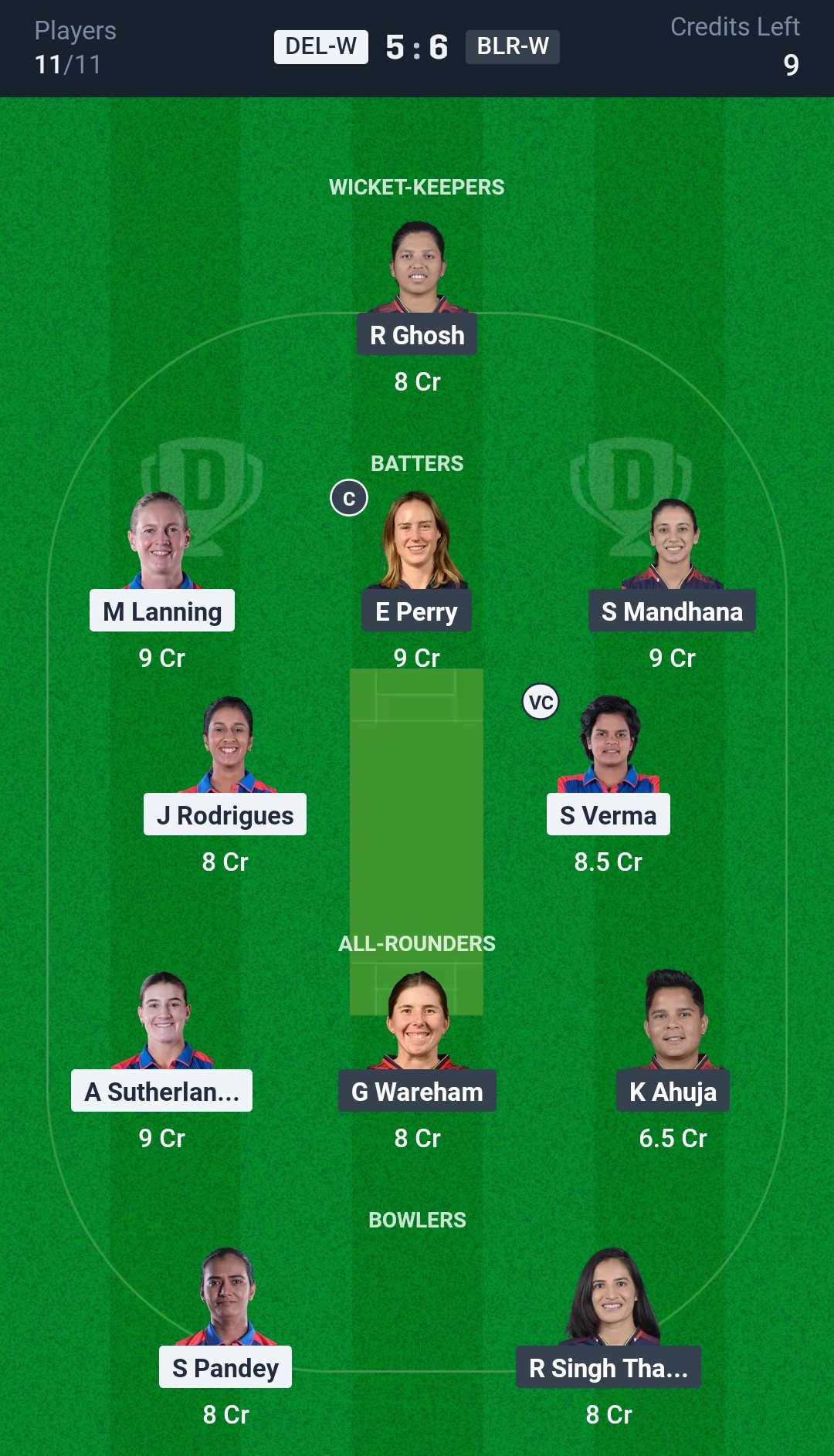 Small League Team for DEL-W vs BLR-W Dream11 Prediction