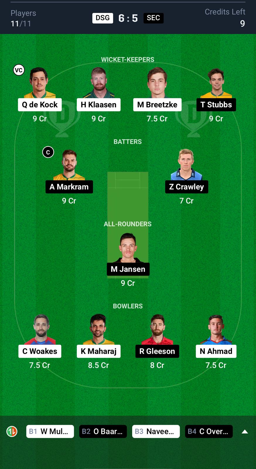 Small League Team for DSG vs SEC Dream11 Prediction
