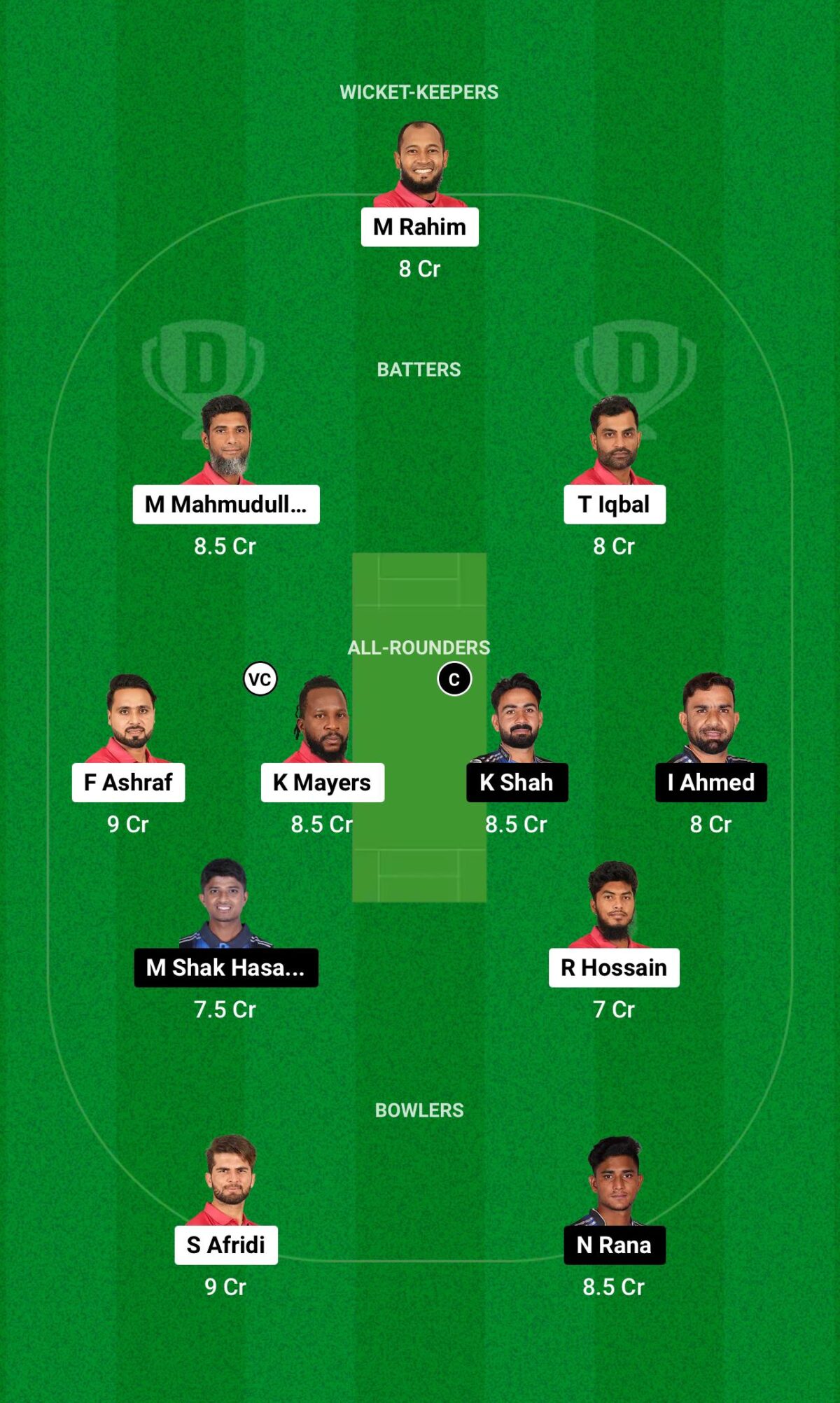 Fortune Barishal: Tamim Iqbal (c), Najmul Hossain Shanto, Kyle Mayers, Towhid Hridoy, Mushfiqur Rahim (wk), Mahmudullah, Jahandad Khan, Faheem Ashraf, Rishad Hossain, Shaheen Afridi, Tanvir Islam