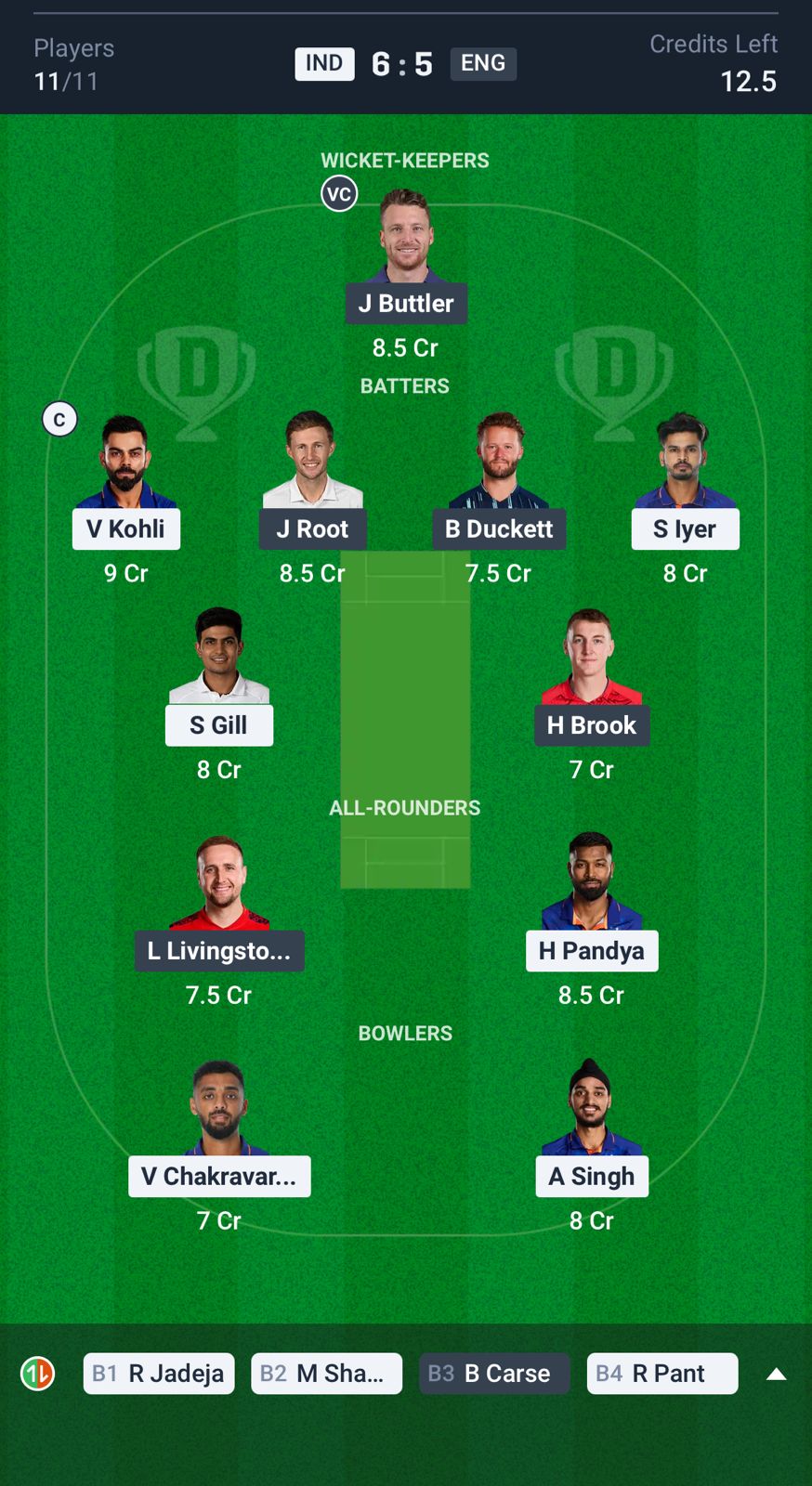 India: Rohit Sharma (c), Shubman Gill, Virat Kohli, Shreyas Iyer, KL Rahul (wk), Hardik Pandya, Ravindra Jadeja, Kuldeep Yadav, Mohammed Shami, Varun Chakravarthy, Arshdeep Singh
