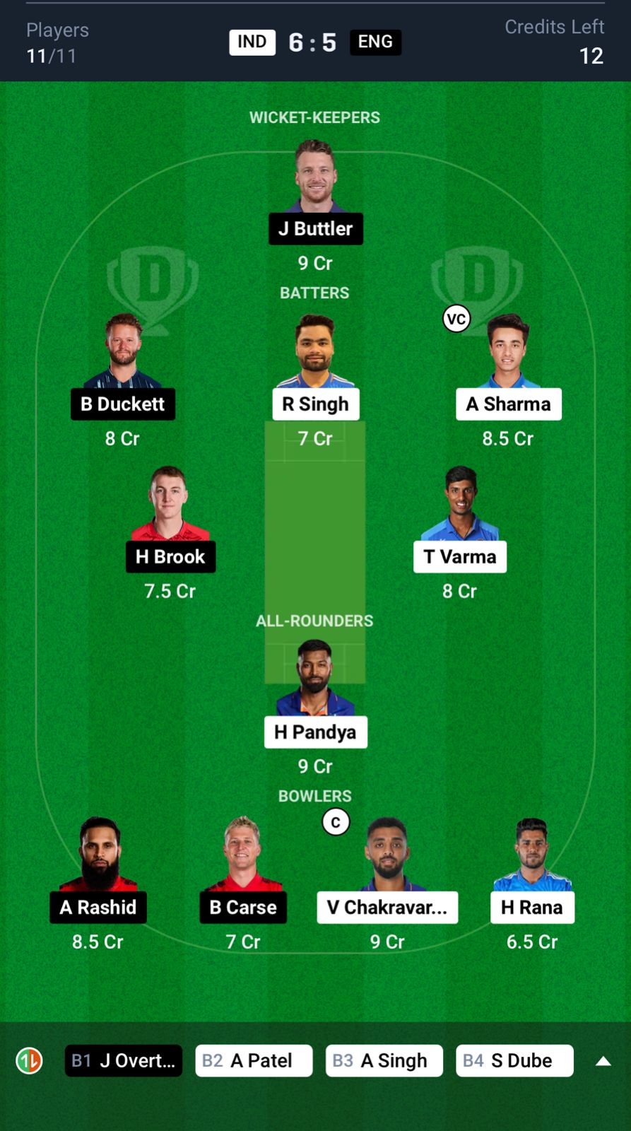 Small League Team for IND vs ENG Dream11 Prediction