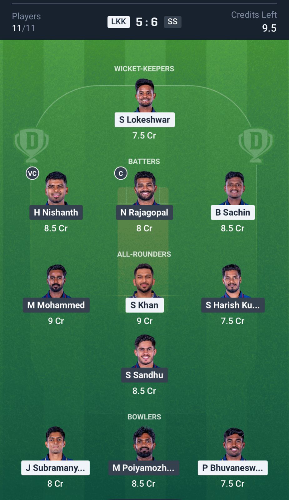 Top Player Picks for LKK vs SS Dream11 Prediction