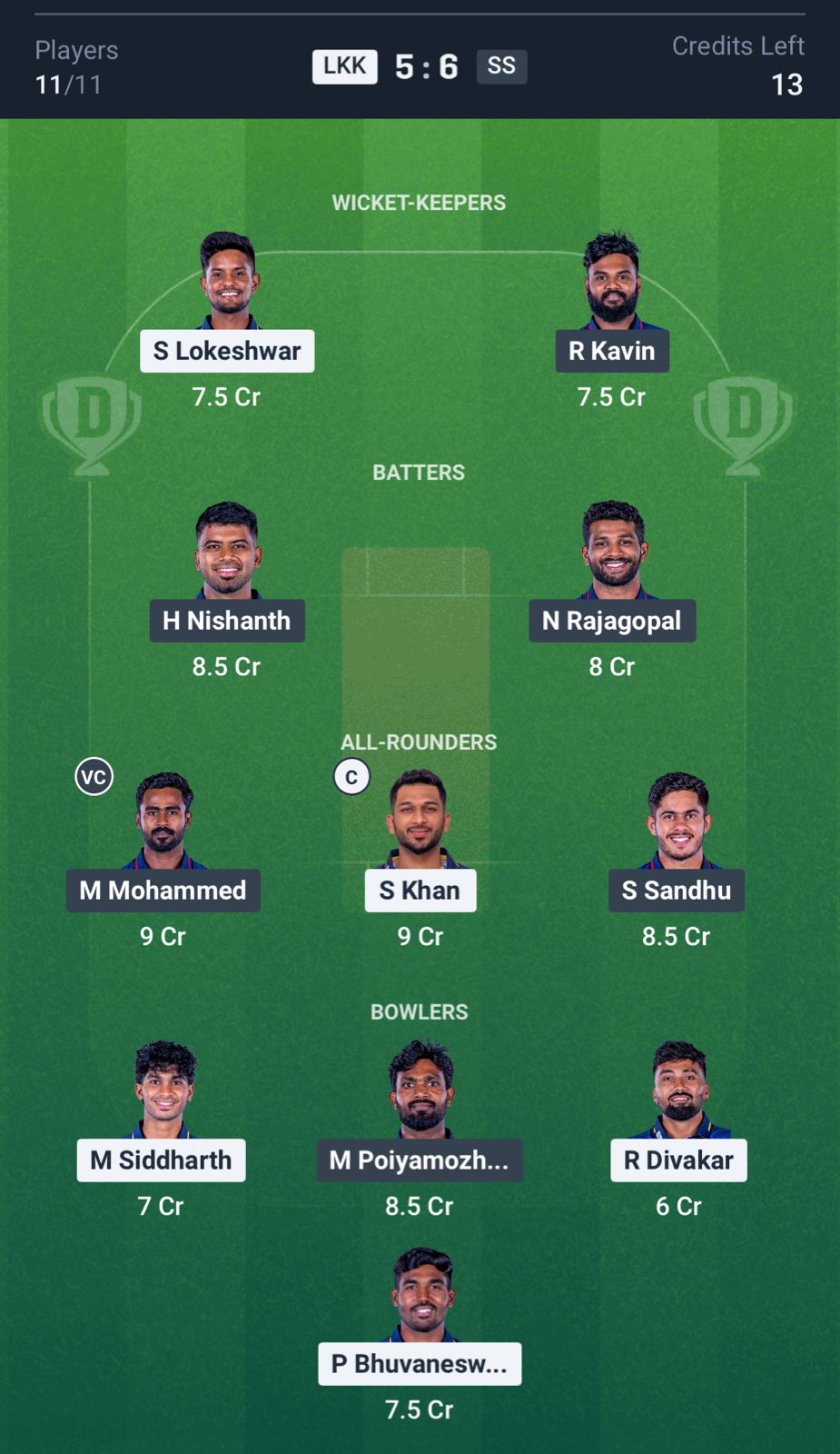 LKK vs SS Dream11 Prediction Today Match 26 Playing XI: TNPL 2025 Fantasy Cricket Tips, Team, and Pitch Report