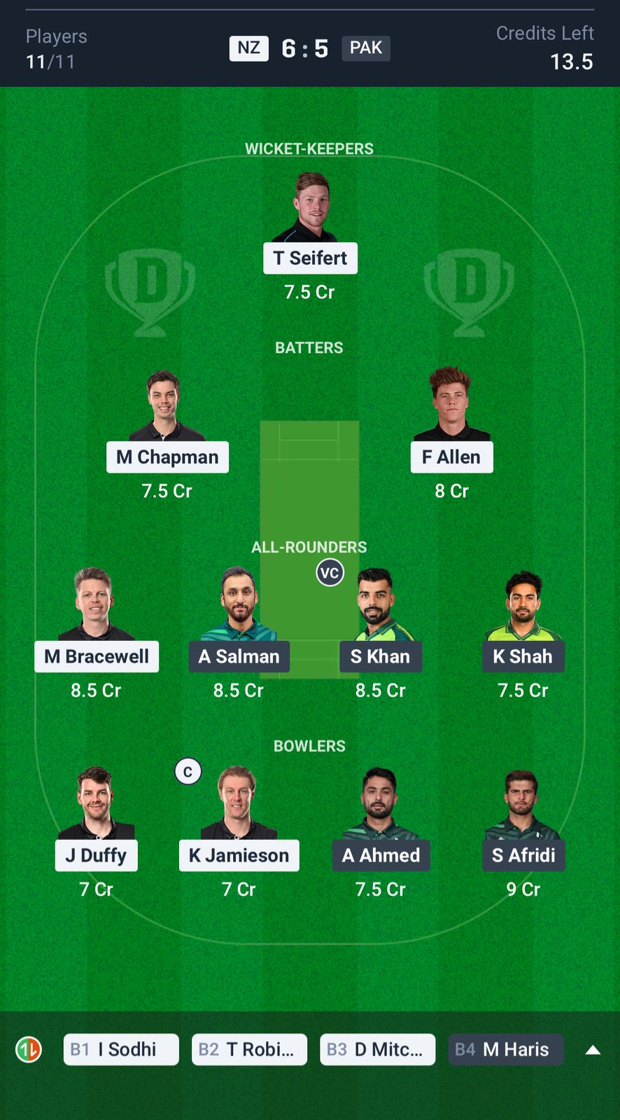Grand League Team for NZ vs PAK Dream11 Prediction