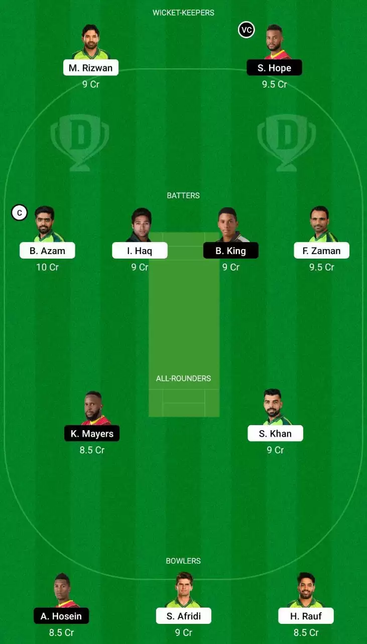 If PAK Bats First: C – Babar Azam, VC – Shai Hope