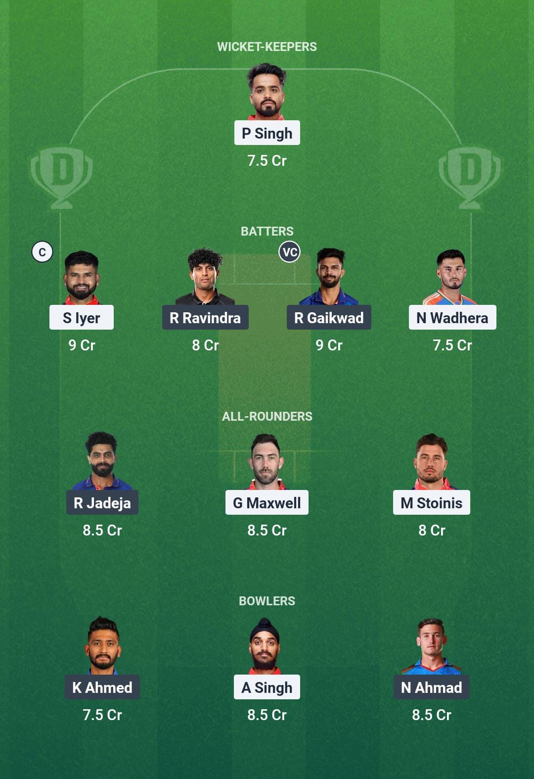 | Glenn Maxwell | 0 (1) | DNB | 30 (21) |