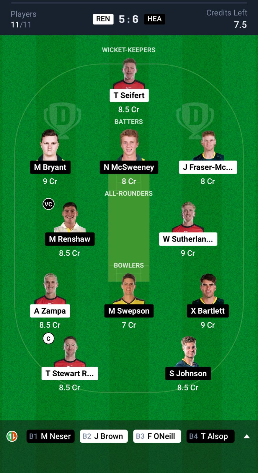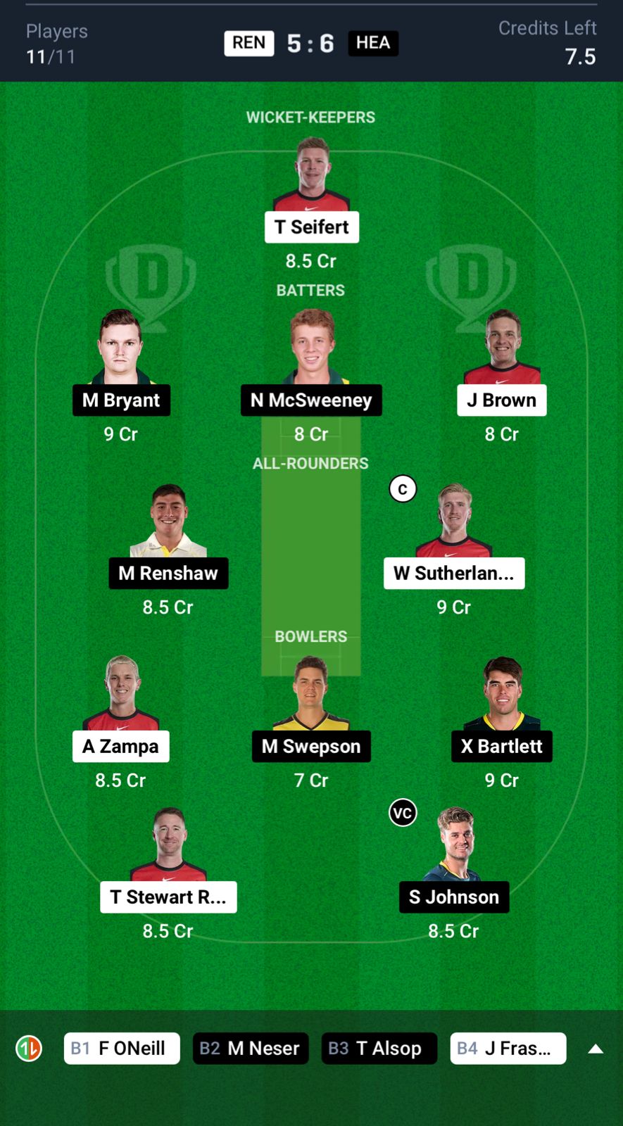 Top Player Picks for REN vs HEA Dream11 Prediction