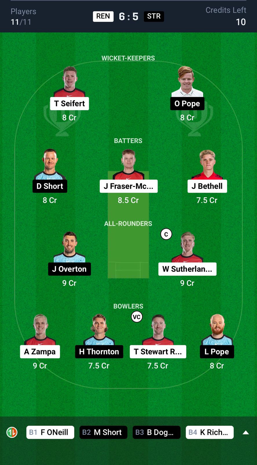 REN vs STR Dream11 Prediction Today, Match 20, BBL 2024/25 Fantasy Cricket Tips, Team, Playing XI and Pitch Report