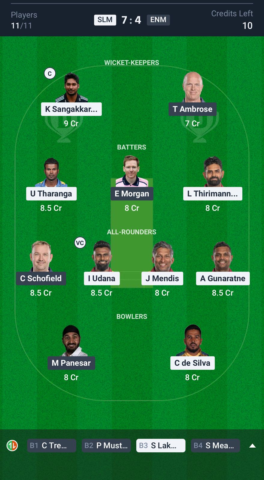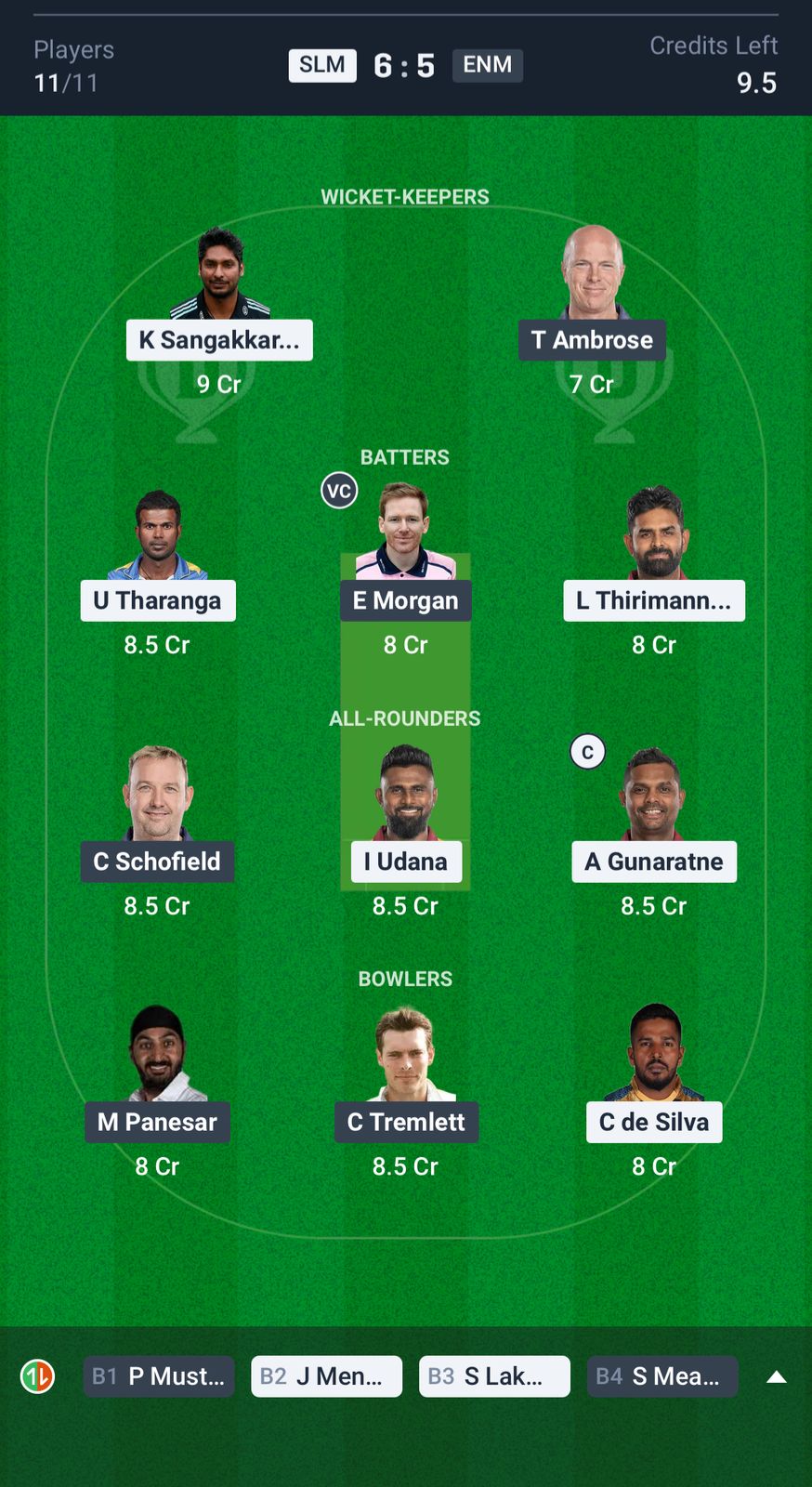 Small League Team for SLM vs ENM Dream11 Prediction