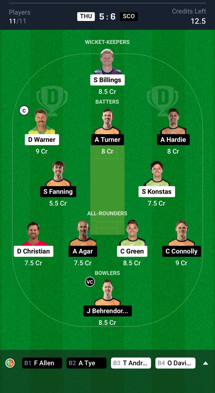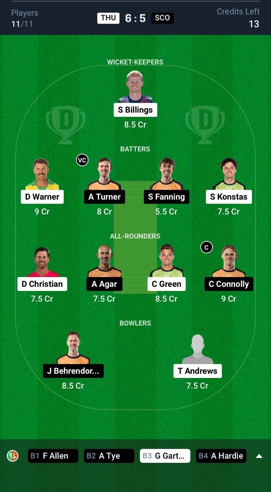 Top Player Picks for THU vs SCO Dream11 Prediction