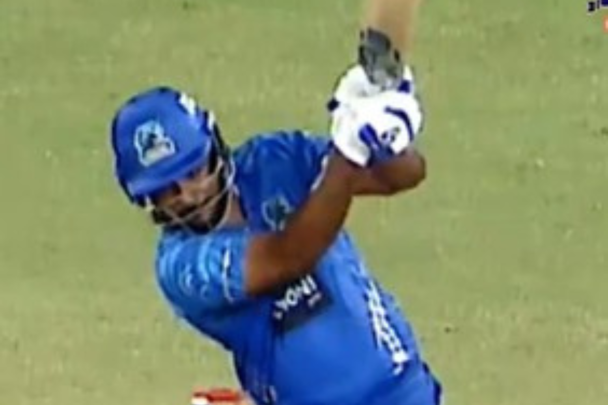 Samson’s first three sixes came in the fourth over of Kochi Blue Tigers’ innings, which was bowled by Aadithya Baiju. He went straight down the ground for his first maximum, before clearing long-on for his second. In the final ball of the fourth over, the wicketkeeper-batter went bog once again, this time clearing the deep midwicket area.